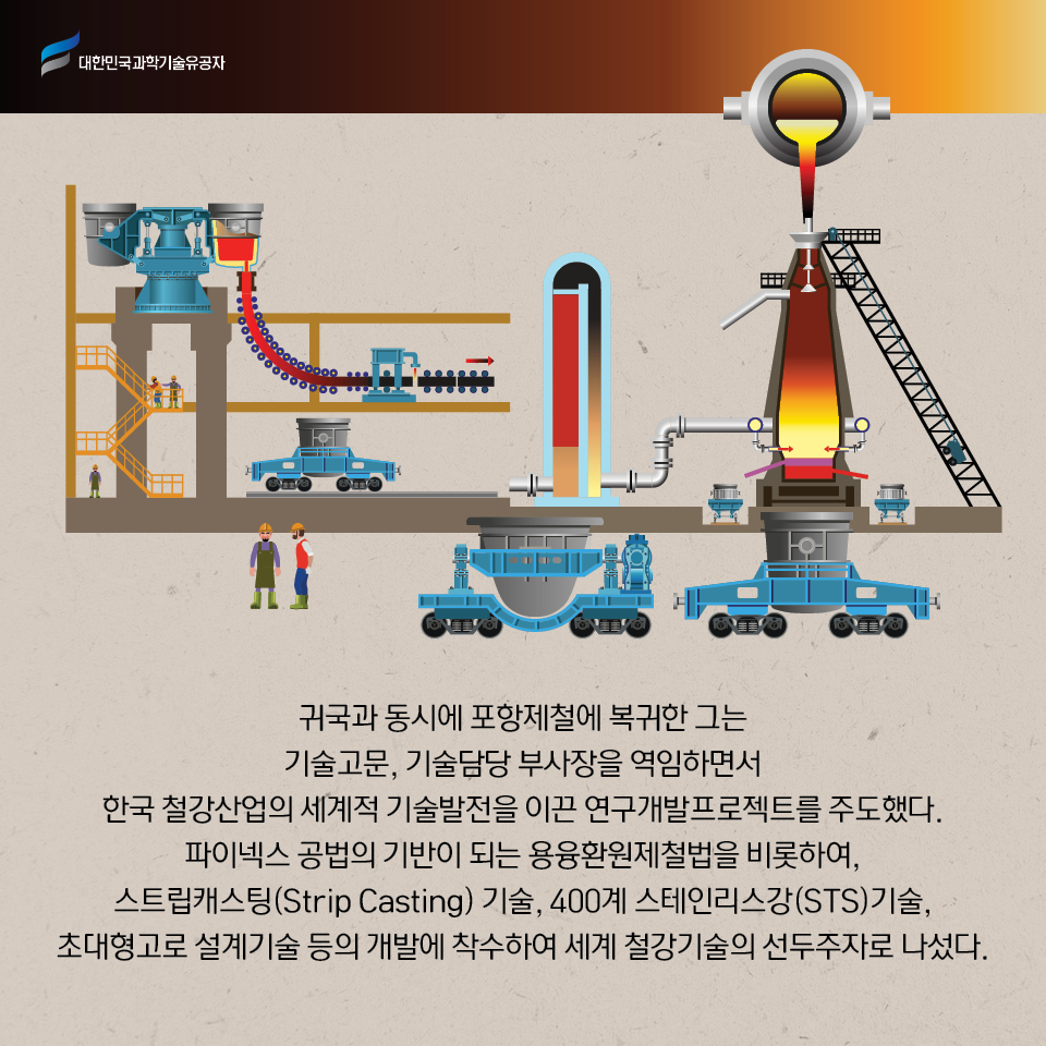 세계 최고 포항제철의 신화를 이끈 철(鐵) 박사 작성자 익명 작성일 2020-02-25 조회수 25267 한국 철강기술의 토대 마련과 철강산업의 고속성장 견인 / 포항제철 고로 1호 설계와 건설을 주도한 재일동포 공학자 목록 다음글 ▲ 한국 식품과학의 체계를 구축한 과학자 한국인의 영양 불균형 문제 해결과 양질의 쌀 보급에 기여 / 한국식품연구원 설립해 식품과학의 세계화 연구기반 마련 이전글 ▼ 세계가 인정한 심장 약리학 권위자 한국 약리학 및 기초의학 인프라 구축에 기여 / 우리말 의학용어 보급과 한국 의학의 체계 구축 이우주